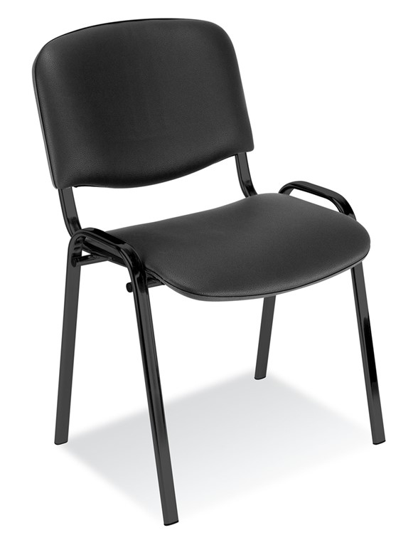 Krzesło konferencyjne z ramą metalową lakierowaną na kolor czarny. Siedzisko i oparcie tapicerowane pianką tapicerską oraz czarnym skajem (V04). Szkielet siedziska ze sklejki. Stopki nierysujące podłogi. Możliwość ustawiania w stos do 10 szt.